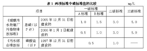 《污水綜合排放標(biāo)準(zhǔn)》中磷酸鹽排放標(biāo)準(zhǔn)如下表所示: